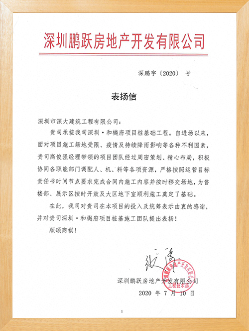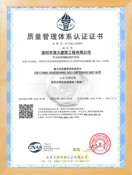 深圳市深大建筑工程有限公司,成立于2017年,注冊資本5000萬,總部位于深圳市寶安區(qū)中心地段。公司擁有地基基礎工程專業(yè)承包壹級資質,市政公用工程施工總承包二級資質,是一家一體化現代型企業(yè)。公司重視企業(yè)內部管理與發(fā)展,嚴格實施ISO管理體系,率先通過了ISO9001質量管理體系認證、環(huán)境管理體系及、職業(yè)健康安全管理體系的認證。為公司的長遠發(fā)展奠定了穩(wěn)健基礎。